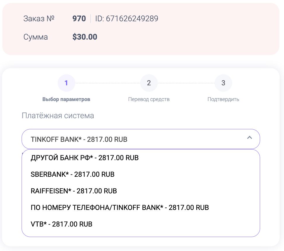 Из списка доступных способов оплаты (банк/наличные/перевод по номеру телефона), выберите подходящий.