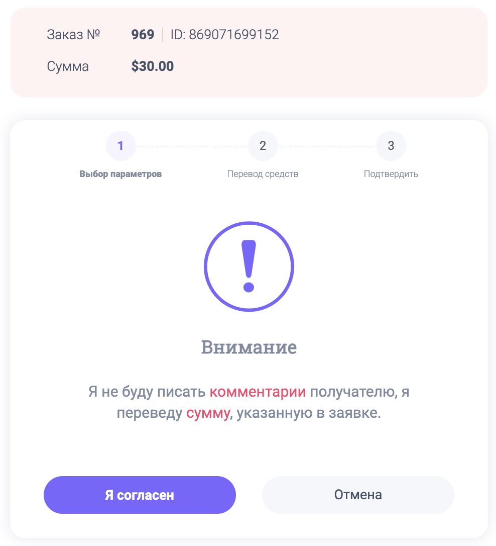 Подтвердите, что переведете точную сумму без указания комментария к платежу в банк-клиенте.