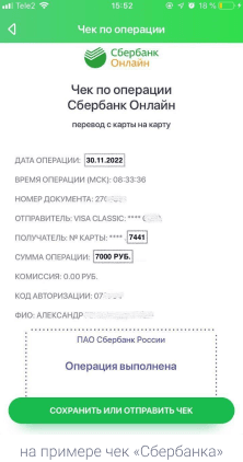После отправки средств, в банк-клиенте формируем чек, и сохраняем его в виде скриншота. Далее, необходимо будет прикрепить его в форму оплаты